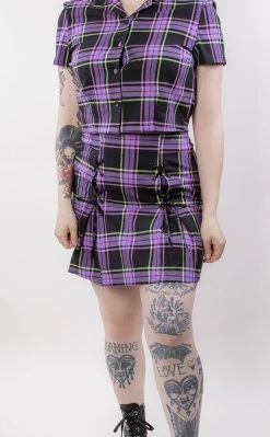 This wigglin’ skirt is made to hug yer bod, fitting with a wide band at the waist.Β Contrasting pink stitching creates flattering lines over the black body, accentuating the crafty cutouts at the front.Β With a rear zip fastening, this baby is easy to slip in and out of.Β