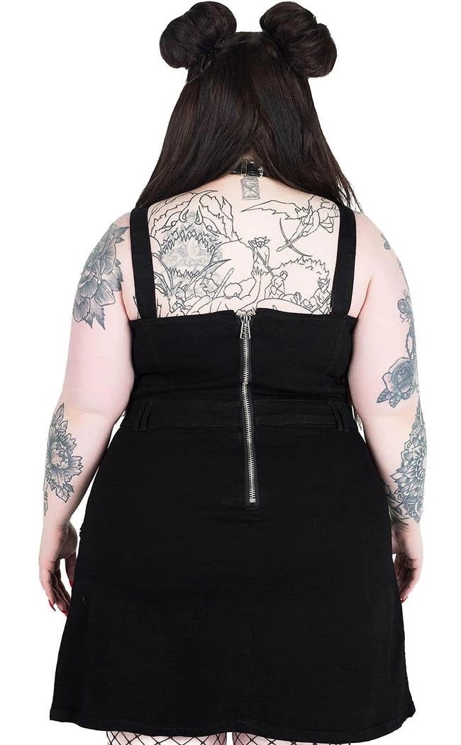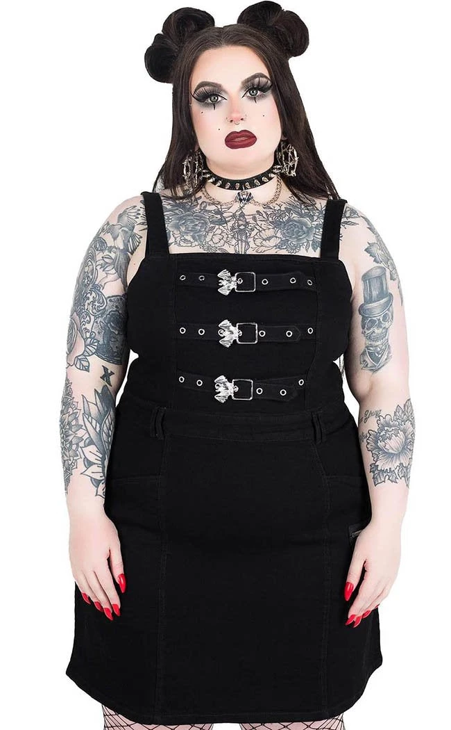 This dress is a gothy dream-a super flattering mini fit with thick shoulder straps, zip details and *gasp* batty buckles!!!!