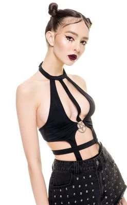 Hug yer bod with liquid shadows in the Vexellent Gloss Harness Dress!Β This shiny piece is made of super sexy gloss PU, featuring a high waist and a full-length zip front.Β You’ll find badass hardware like a pentagram charm, D rings for adding chains n straps and fully adjustable shoulder straps.